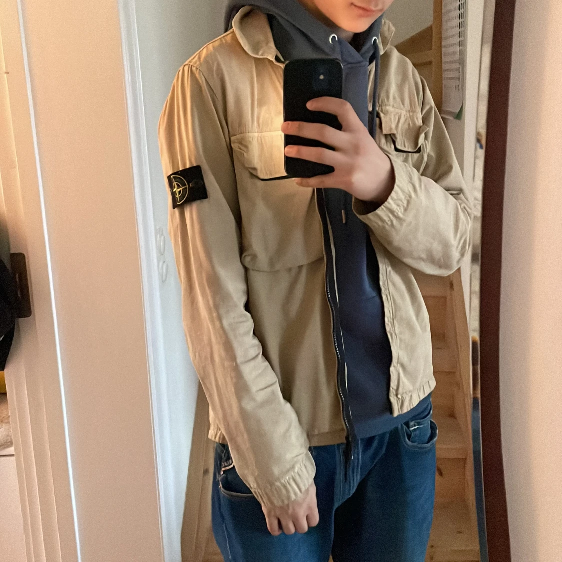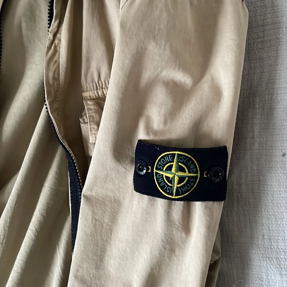 Säljer en snygg beige jacka från Stone Island med dragkedja. Jackan har en klassisk krage och den ikoniska Stone Island-loggan på ärmen. Perfekt för våren och sommaren!Skick 8/10 Kom dm för mer bilder eller frågor. Pris kan diskuteras