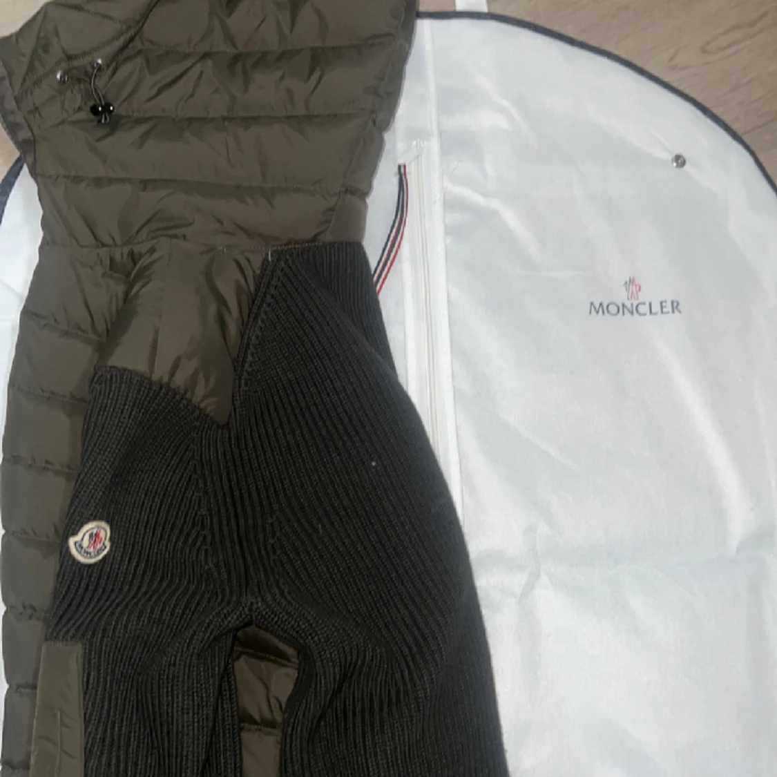 En olivgrön moncler cardigan som knappt är använd för ett bra pris.