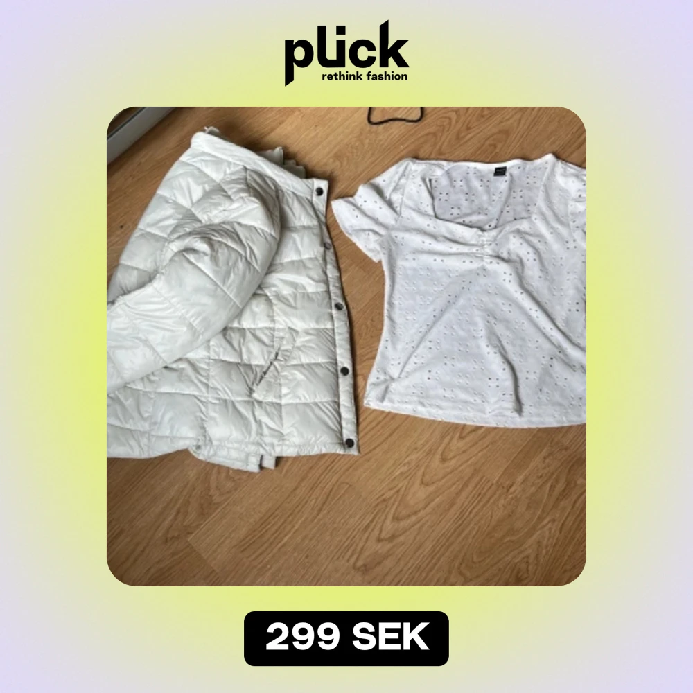Jag säljer nu detta superfina och sköna sommarkit. En vit jacka och en vit sommartröja. Nyskick, bra kvalitet. Dam, storlek M på tröja. Dam storlek 40 på jackan. Vid intresse eller fundering, skriv.
