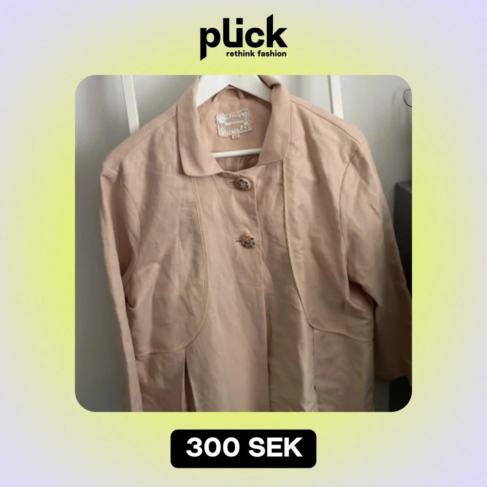 Super söt babyrosa jacka i strl 42 men passar mig som jag strl S. Aldrig använd, alla pärlor sitter kvar på knapparna. Silkesmaterial på insidan.