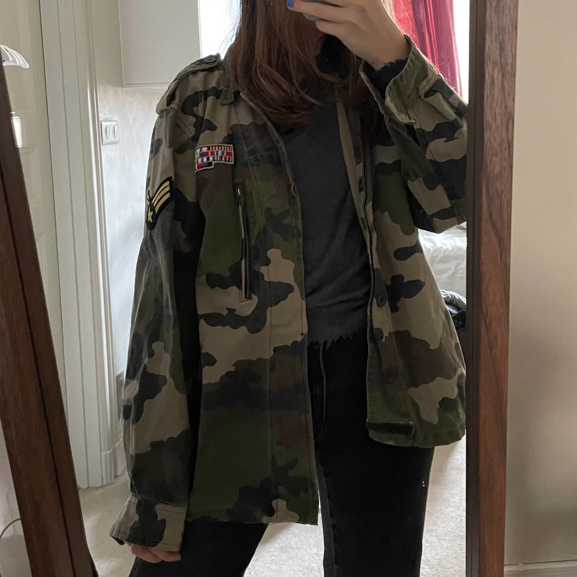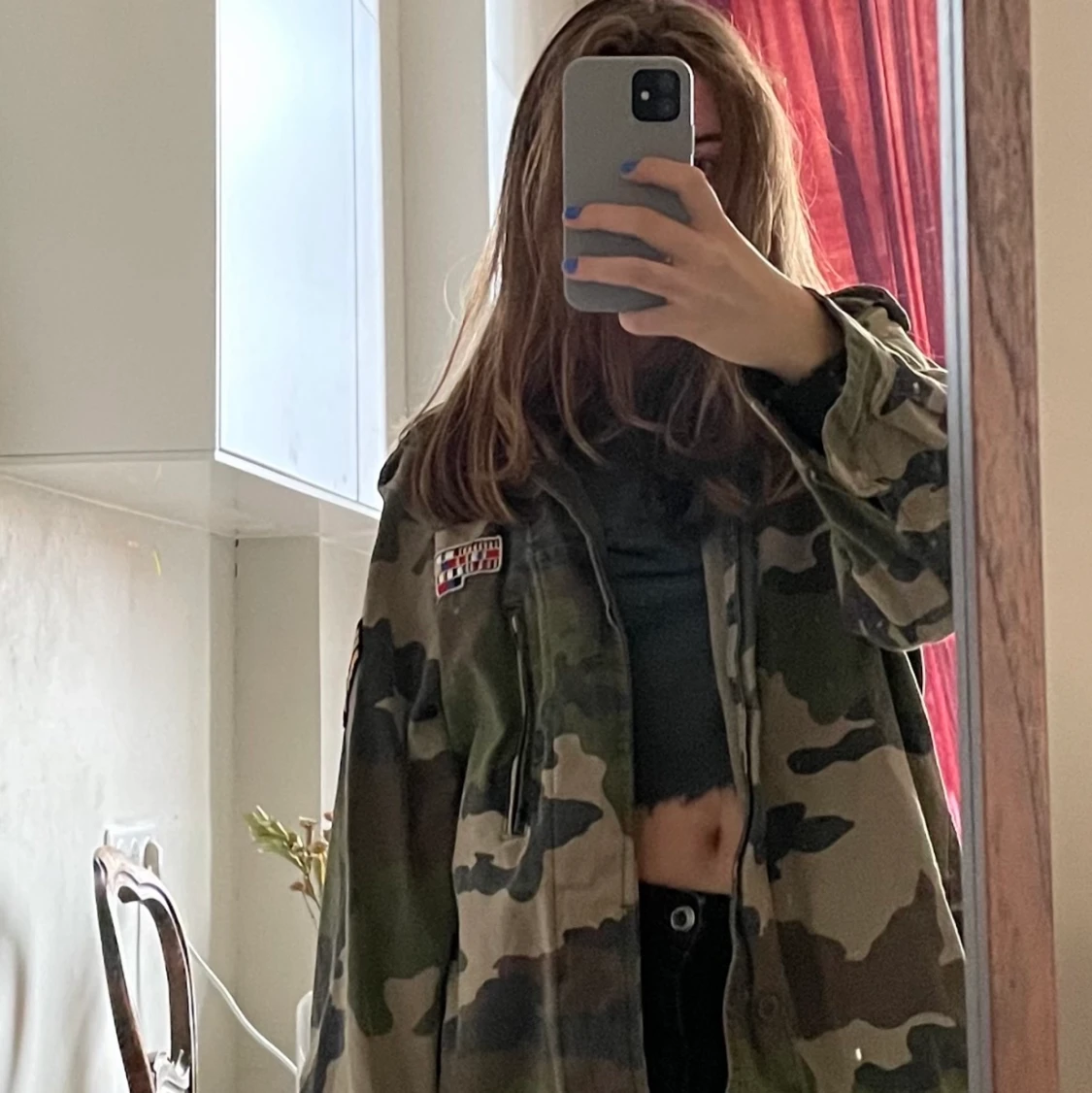 Säljer en sjukt snygg camouflage jacka med två coola patches på. köpt på soul river, storlek 38 men passar alla storlekar🧡