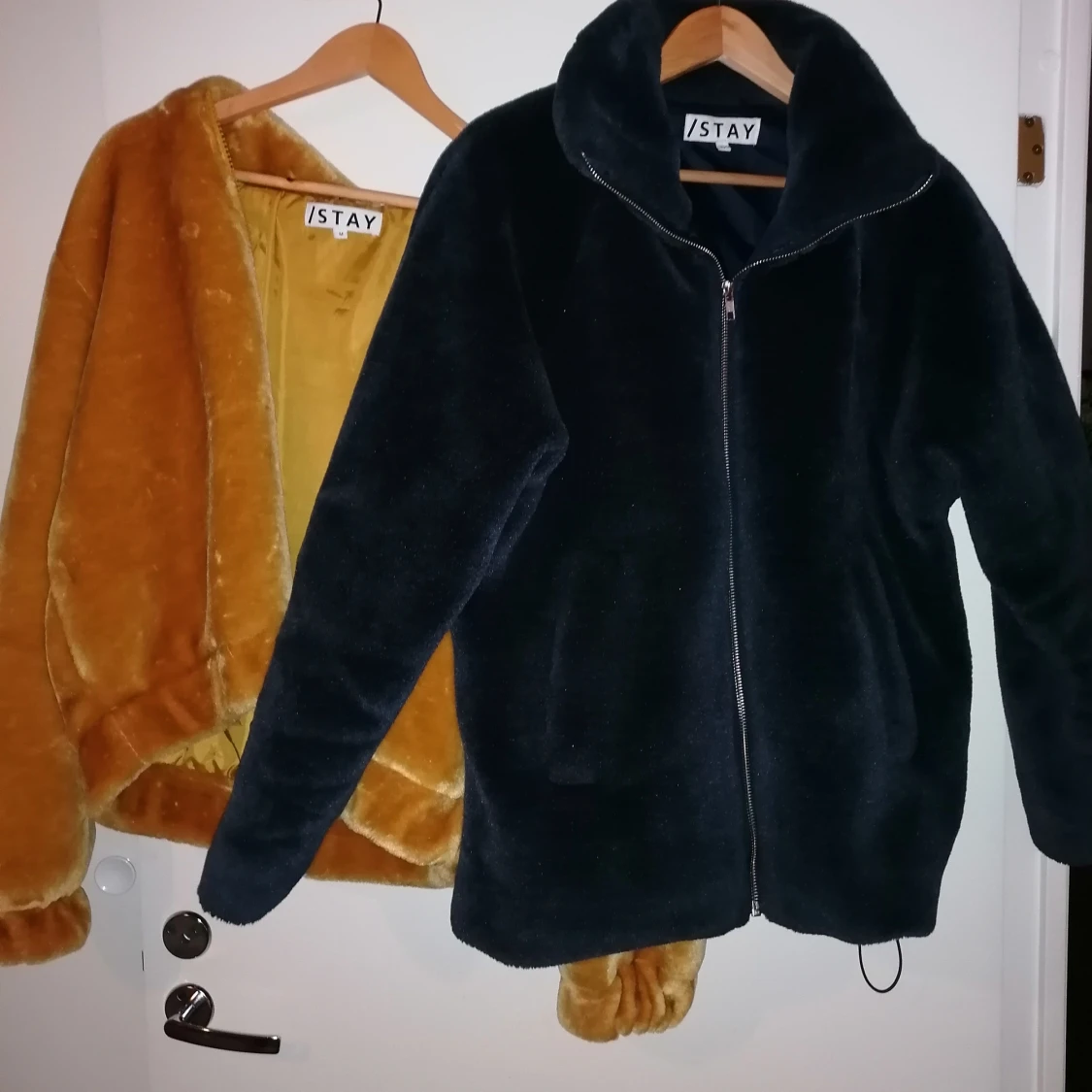 Den senaps- eller mer lejongula jackan är kortare modell, har stor djup luva och är varm och vindtät. Dragkedja och två fickor. Den mörkblå är något längre och lite mer oversize, har hög krage och dragkedja och två fickor. Mycket lyster i båda jackorna. De är i perfekt skick, knappt mer än testade. Säljer billigare som paketpris. Kan både mötas upp (Karlskrona eller Växjö) och skicka såklart. Fler bilder skickas vid önskemål! :) Köparen betalar frakten.