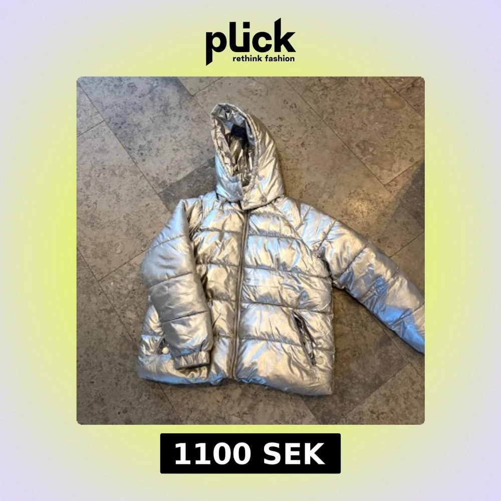 Snygg och glansig silverfärgad pufferjacka från Stella McCartney. Jackan har en luva och dragkedja framtill. Perfekt för att hålla värmen med stil under kyliga dagar.