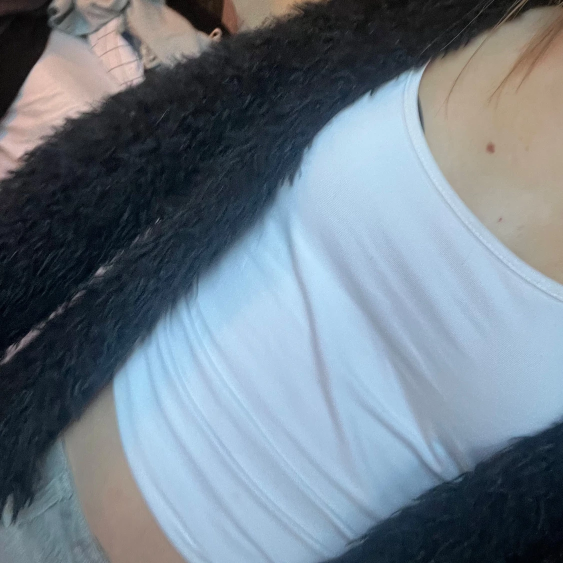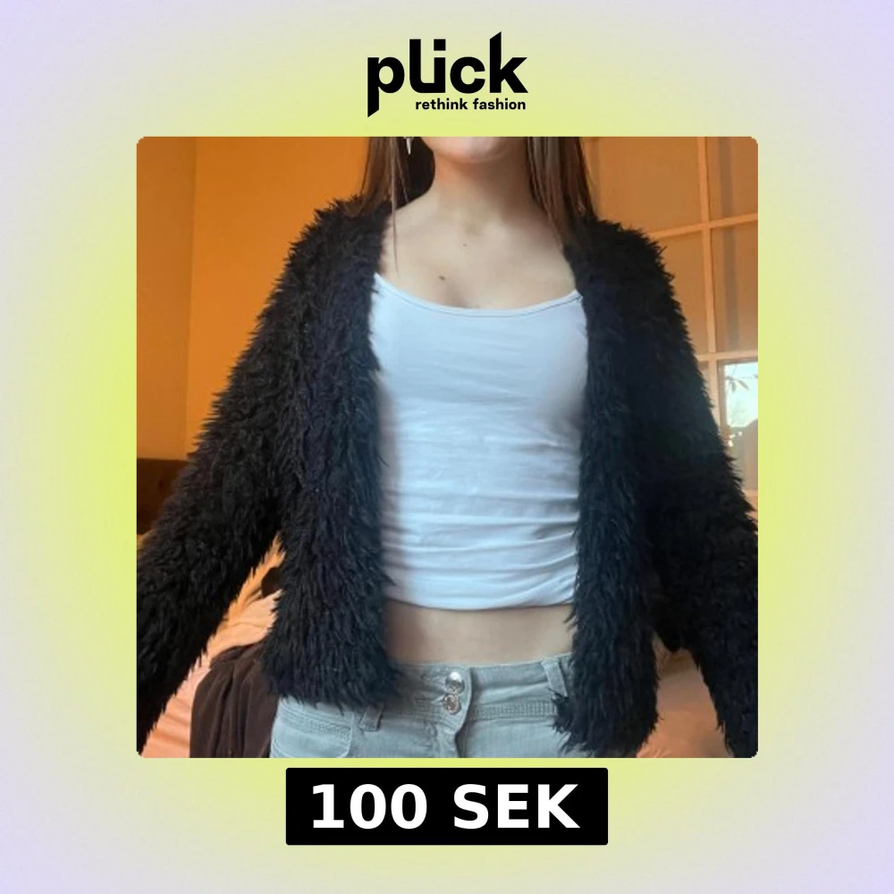 Säljer en mysig svart fluff kofta med lång ärm. Perfekt för att hålla sig varm och stilren under kyligare dagar. Jackan har en fluffig textur som ger en trendig look.