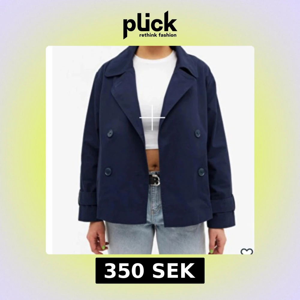 Snygg mörkblå trenchcoat med dubbelknäppning. Säljer pågrund av att den inte kommer till användning längre. I väldigt fint skick! Slutsåld på hemsidan. Köpt för 649kr, säljer för 350kr. Skriv för fler bilder🥰