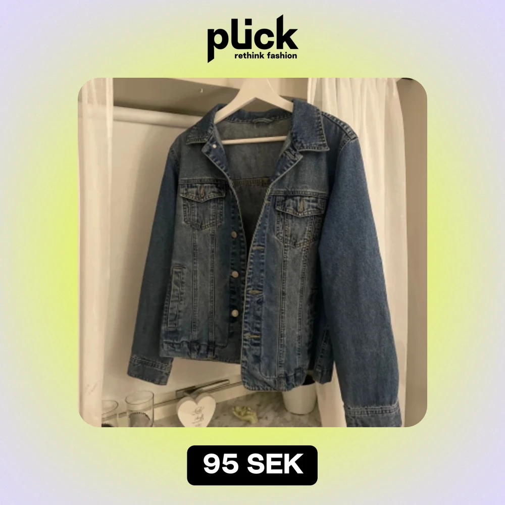 jeansjacka, finns ingen lapp om märke. Sitter snyggt, lite oversize. Perfekt till våren o sommaren