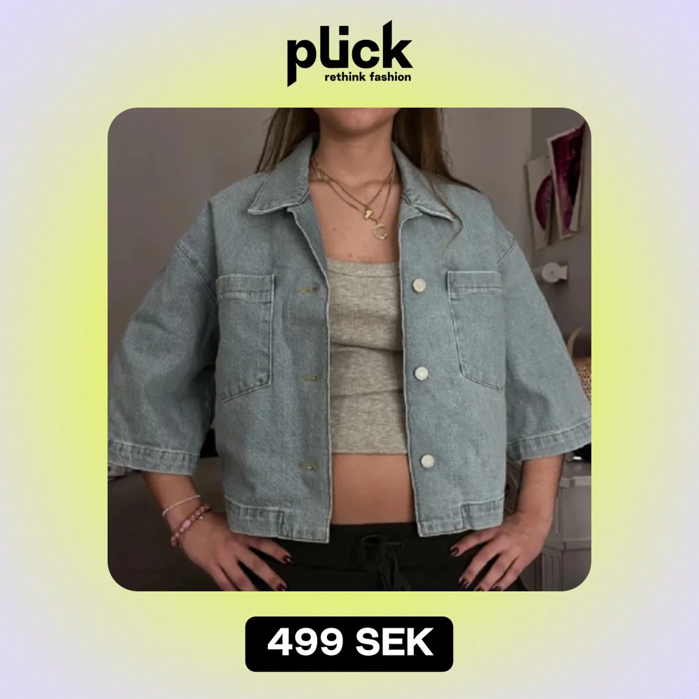 Trekvartsärmad kappa i jeans som är Perfekt nu till hösten. Endast använd 1 gång och köpt på plick. De två första bilderna är från förra säljaren. Hör av er vid funderingar😊💕