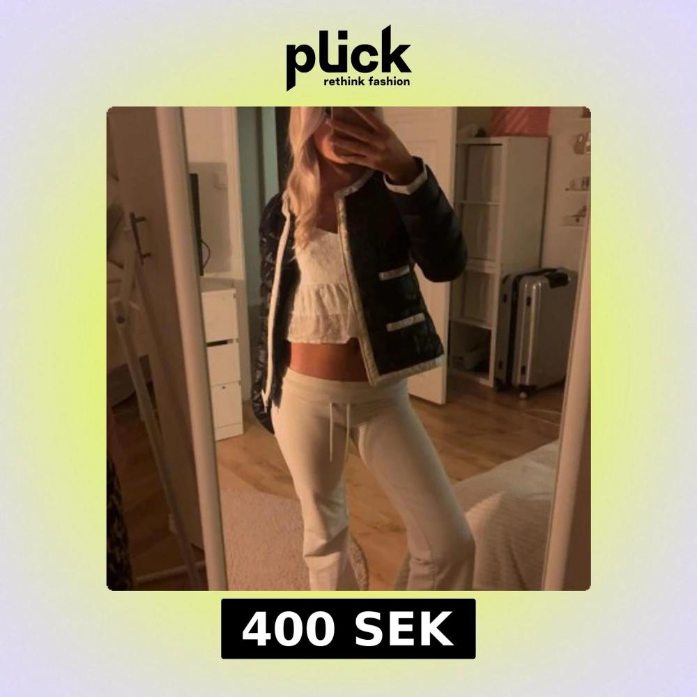 Säljer en svart pufferjacka med vita kontrastdetaljer längs kanter och fickor. Jackan har en kort, boxig passform och är quiltad med dragkedja framtill. Perfekt för dig som gillar en clean och modern look. PRIS GÅR ATT DISKUTERA!!