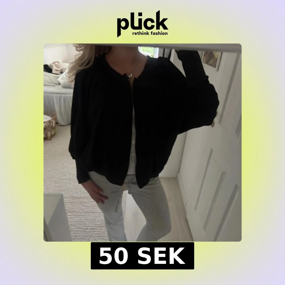 Svart bomberjacka med guldig dragkedja framtill. Jackan har en loose passform och långa ärmar. Enkel och stilren design som passar till det mesta. Materialet känns mjukt och lätt, koftaktigt, perfekt för lager-på-lager.