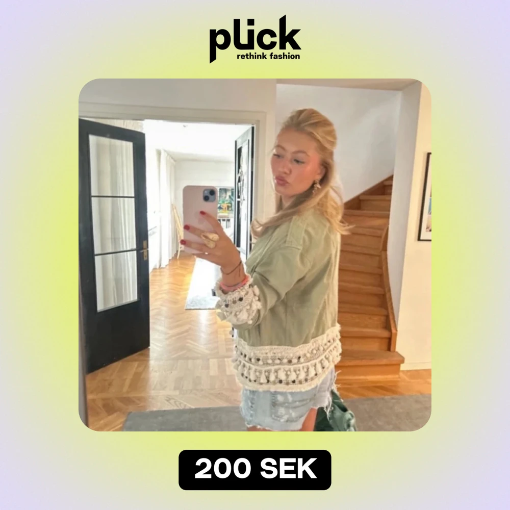 Säljer en superfin gröna jacka med unika spetsdetaljer och volanger. Jackan har långa ärmar och en loose passform, perfekt för vår och sommar. Den är både stilren och bohemisk, vilket gör den perfekt för både vardag och fest. Passar perfekt till jeans eller en sommarklänning!