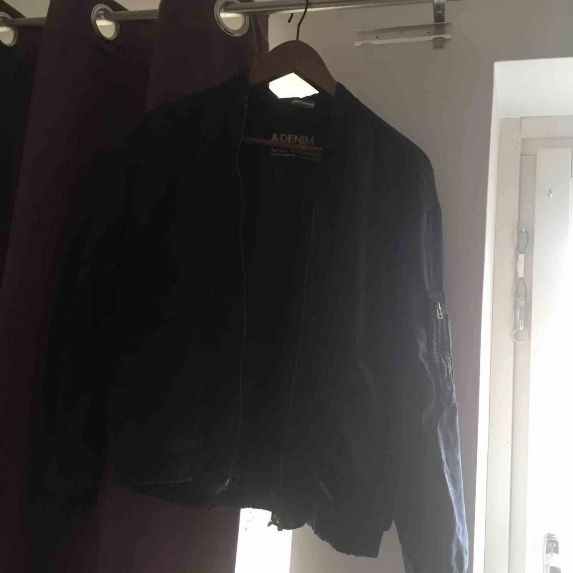 Denim bomberjacka med dragkedjor på sidan. Funkar som en tunn vårjacka, väldigt skön och trevlig. Frakt ingår i priset! Storlek 34
