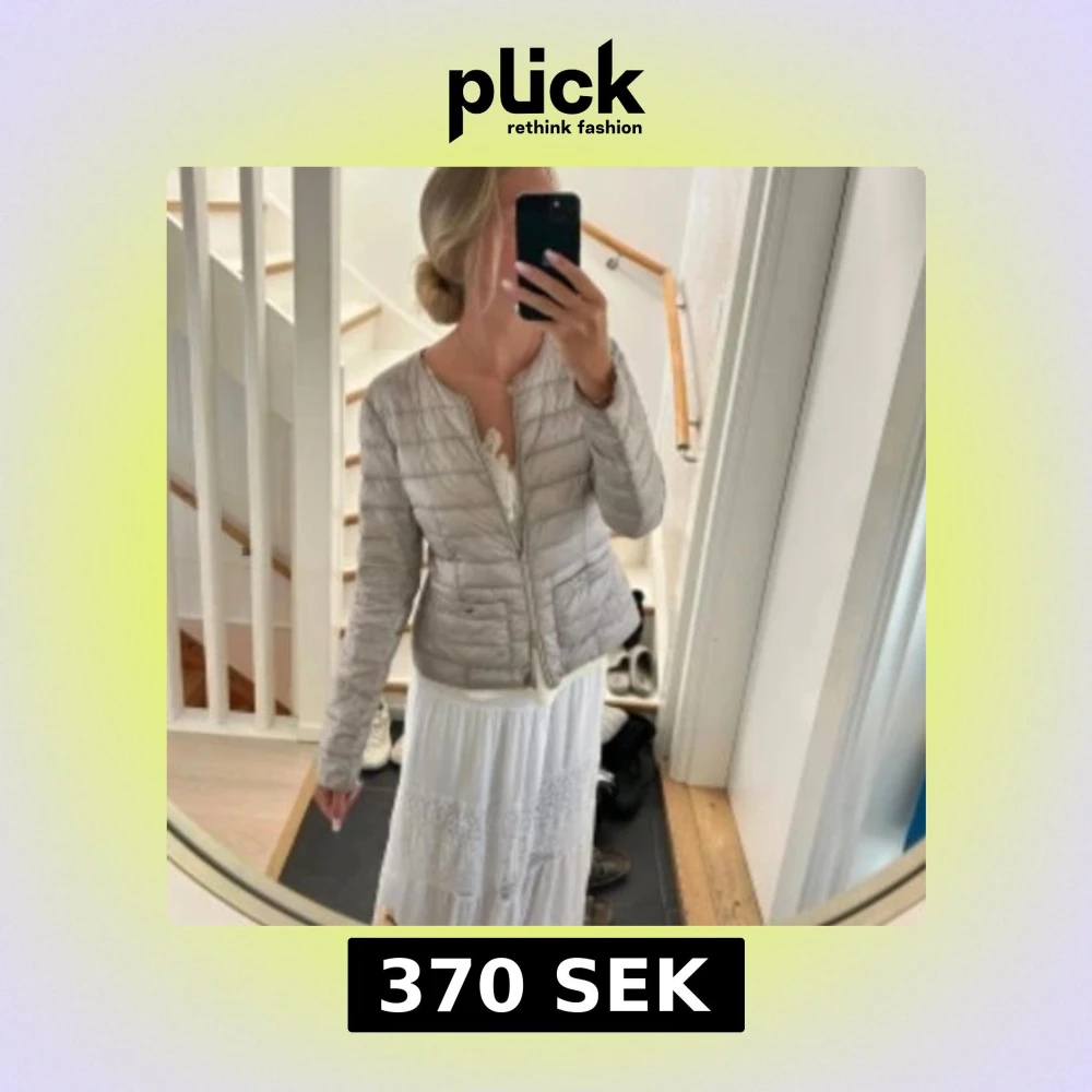Snygg beige jacka med quiltade detaljer och dragkedja framtill. Jackan har rund hals, två fickor med dragkedja och långärmad design. Perfekt för dig som vill ha en lätt och stilren jacka till kyliga dagar. Första bilden är lånad men sitter så på