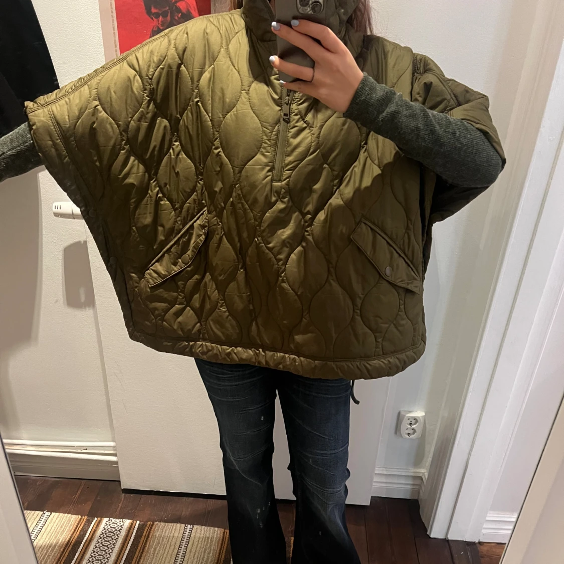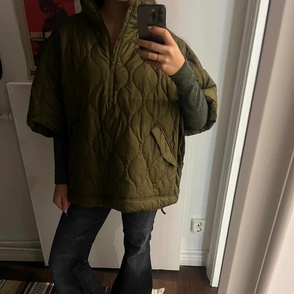 säljer nu min virala h&m poncho i khaki som ej säljs längre. storlek M men sitter oversize på mig som vanligtvis har S! säljes i befintligt skick