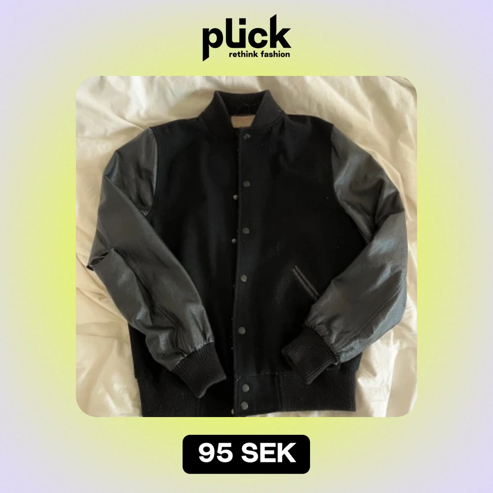 Svart bomberjacka i skinn! Storlek medium från Vailent co. Den har lite slitningar i skinnet & ett hål bak på armbågen, annars fin :)