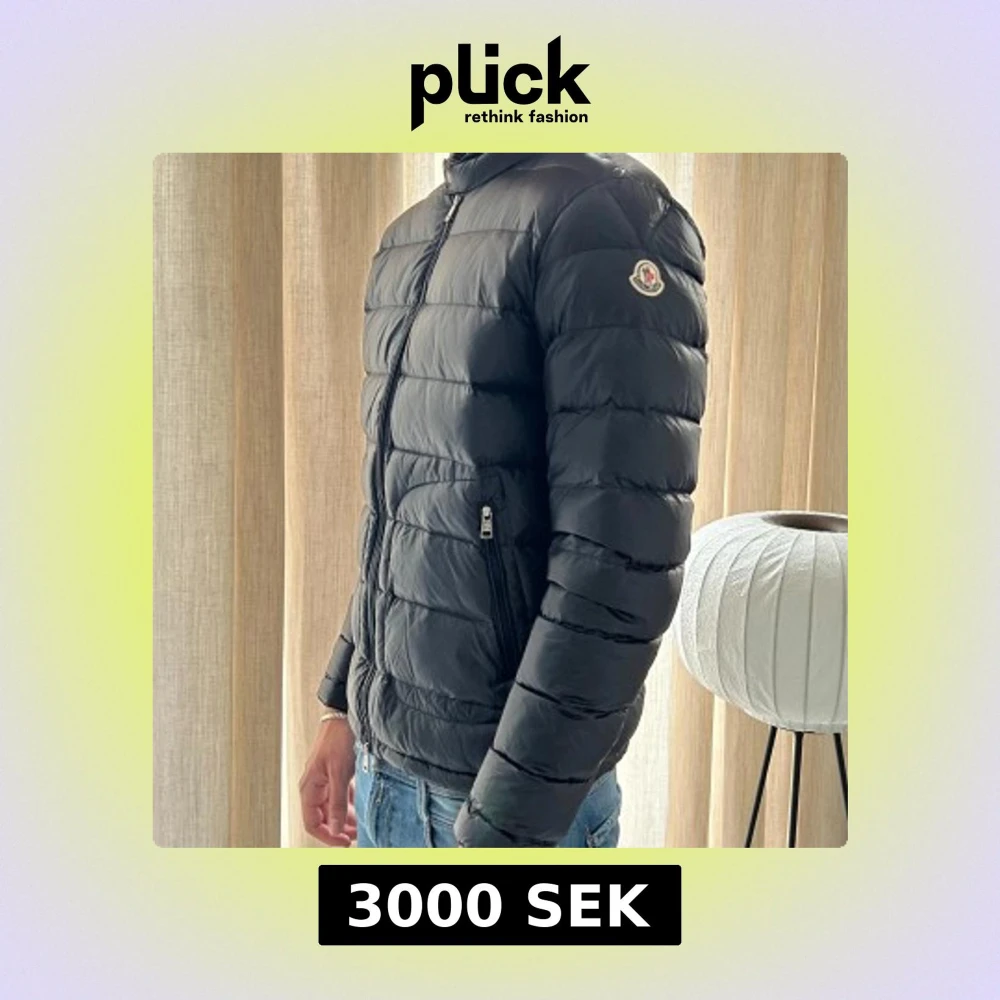 Säljer en svart dunjacka från Moncler med klassisk quiltad design och hög krage. Jackan har dragkedja framtill, två fickor med dragkedja och Moncler-logga på ärmen. Perfekt för kyliga dagar och riktigt snygg till jeans eller cargo.