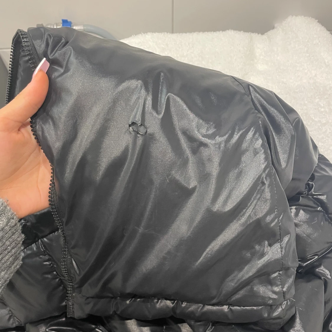 Intressekoll på min moncler Maya jacka i storlek 2. Äkta kvitto finns, litet hål i jackan (sista bilden)