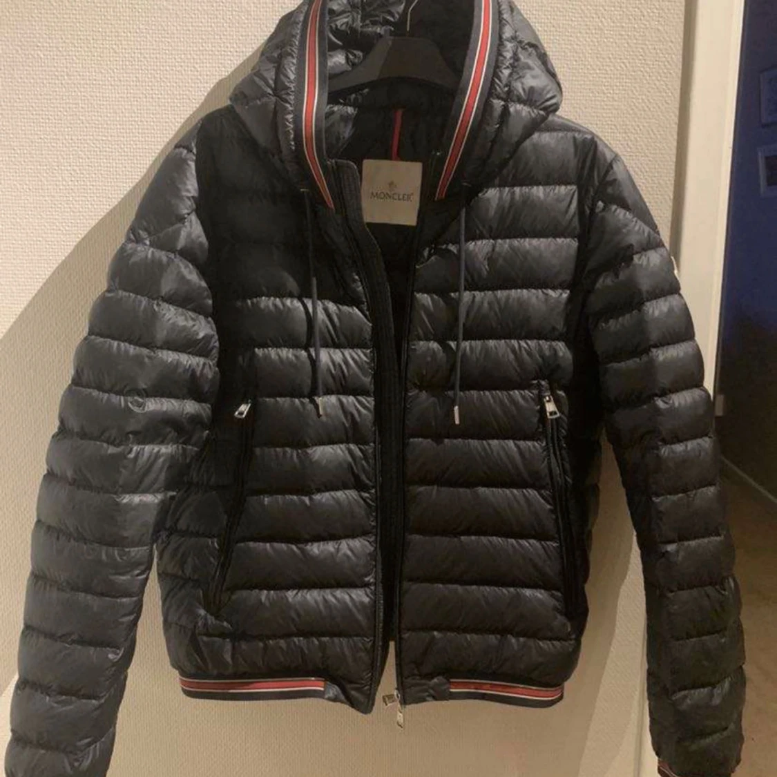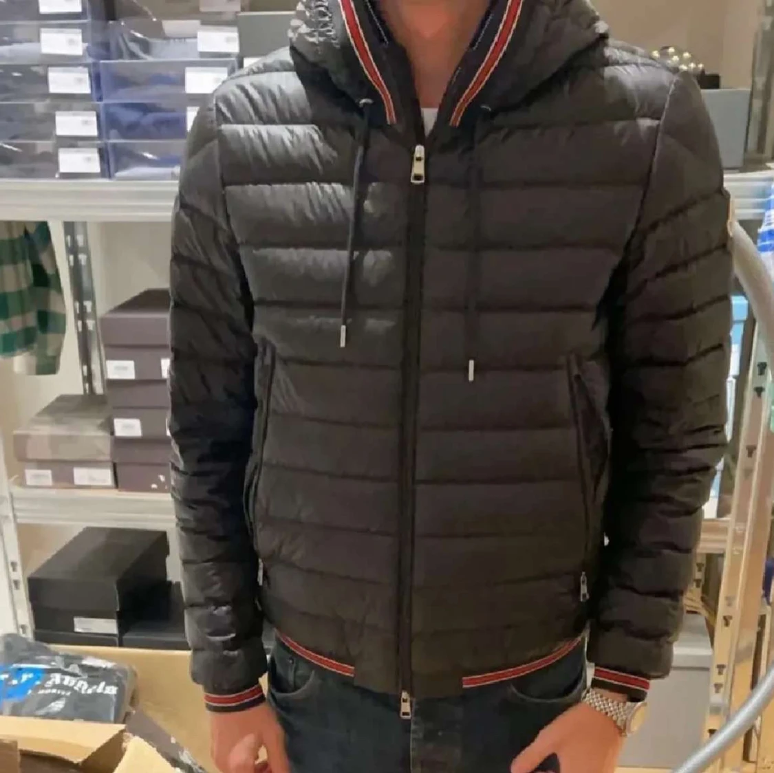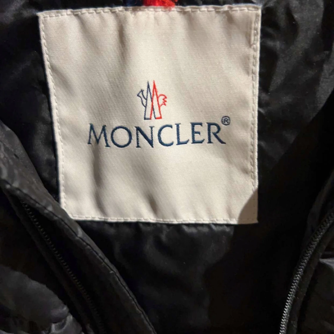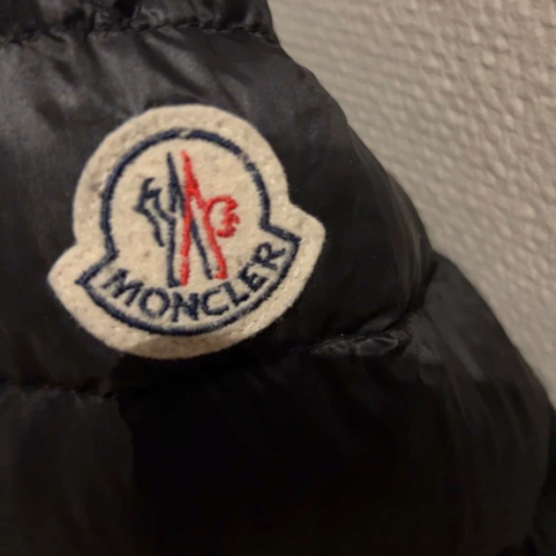 Säljer en snygg svart dunjacka från Moncler i mycket bra skick. Jackan har en quiltad design med dragkedja och luva. Den har också Monclers ikoniska logga på ärmen. Perfekt för höst och vinter, håller dig varm och stilren! 🖤