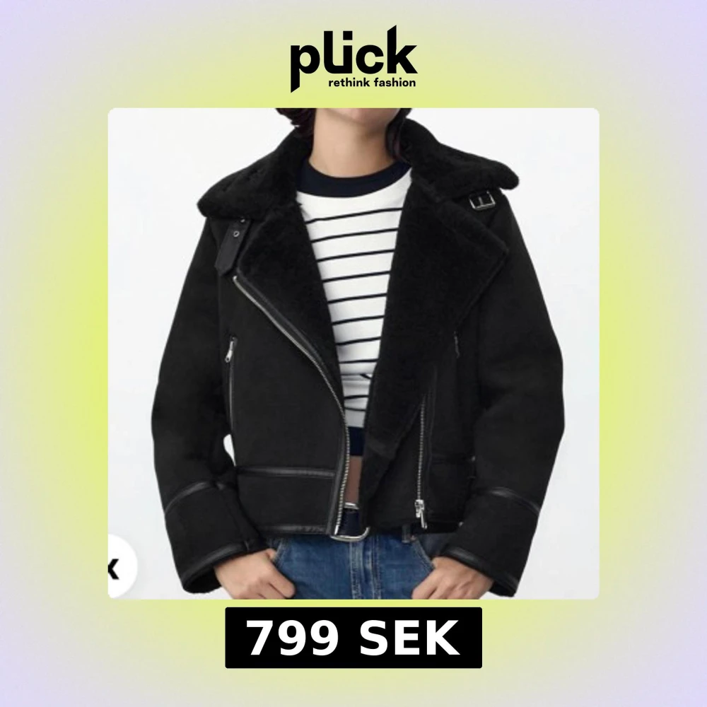 Snygg svart teddyjacka med bred krage och detaljer i skinnimitation. Jackan har en asymmetrisk dragkedja, två sidofickor med dragkedja och spänndetaljer vid kragen och nederkant. Perfekt för dig som gillar en cool och trendig look. Köpt för 799kr💞🤗