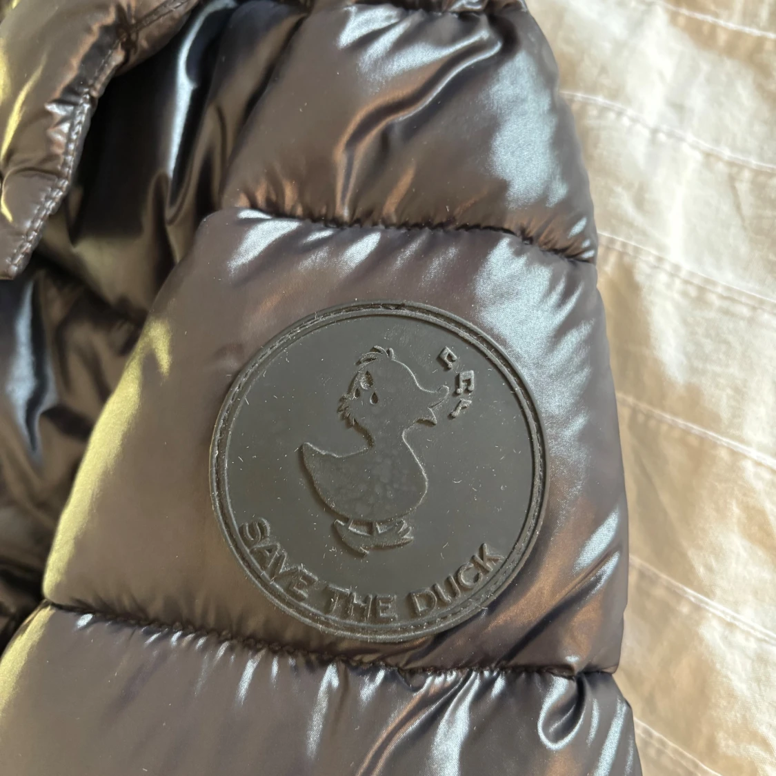 Säljer min Save The Duck jacka eftersom den är för liten på mig. Jackan är glansig, vegan, behåller värmen och vattentät. Använd en vinter.