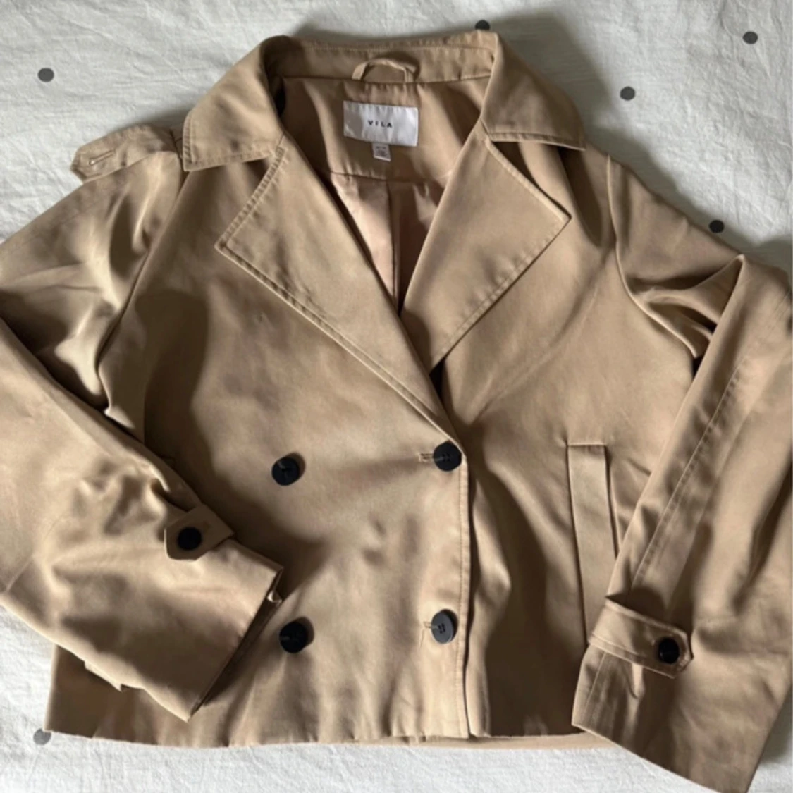 Säljer denna beiga trenchcoat från Vila. Sparsamt använd och i super fint skick. Storlek 36, passar 34 också. Har några defekter som man kan se på de sista bilderna. Har ett litet hål på bröstet från en majblomma pin, en knapp har gått av på ena axeln och det finns en liten fläck på armen. Fläcken går säkert bort i tvätten. 320 kr + frakt! Vid fler frågor, bilder etc skriv privat 🙌🏼💐✌🏼🩷👍🏼