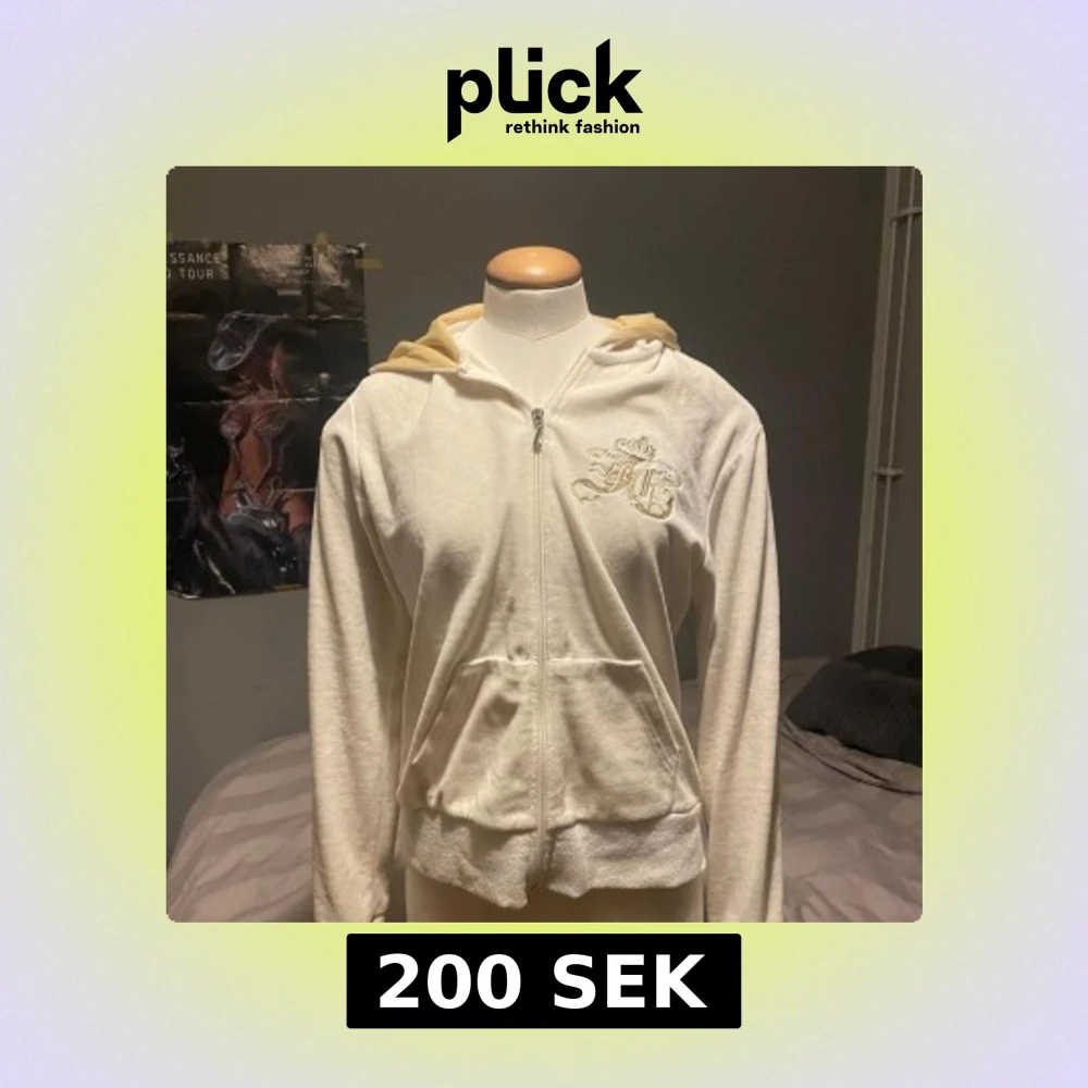 Vit hoodie med dragkedja och huva från Juicy Couture. Broderad logga med krona och texten 'Juicy Girl' i guld på både fram- och baksidan. Mjuk och skön, perfekt för en avslappnad stil.