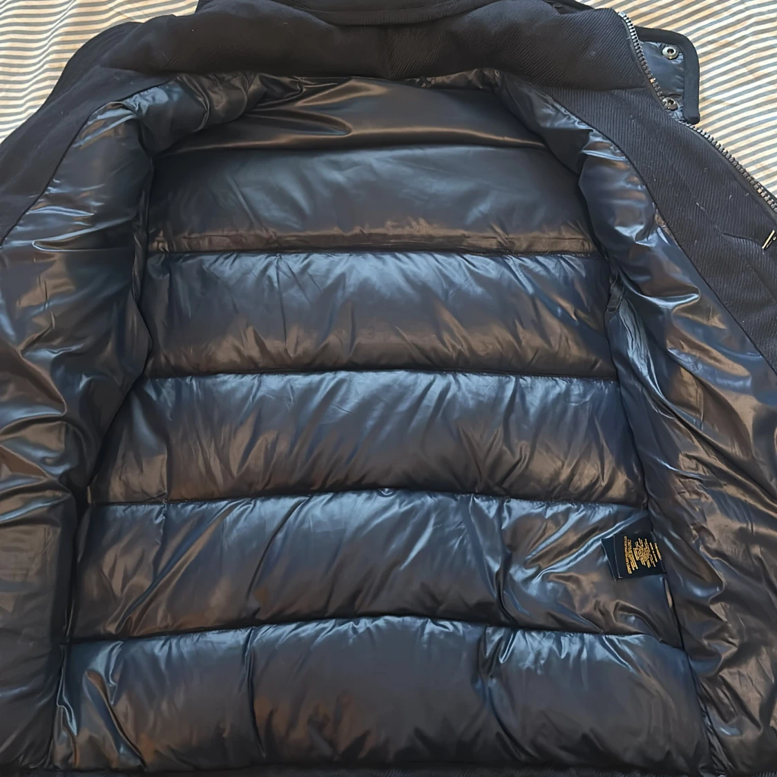 Extremt snygg och stilren vinterjacka från Ralph Lauren. Den är i riktigt bra skick, enda defekten kan vara lite slitage på dragkedjan. Större delen av jackan är i 100% ull. Passar dig som är mellan 170-175 cm lång.