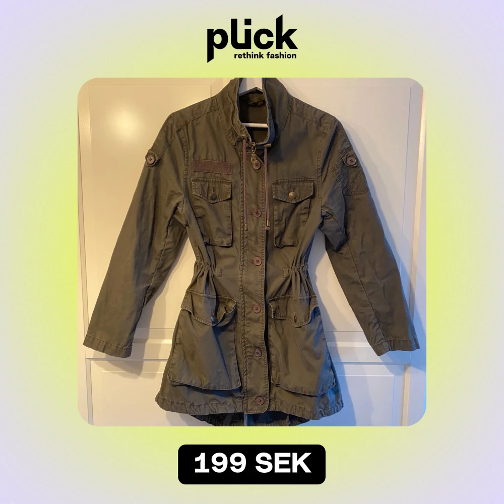 Säljer en olivgrön parkajacka i bra skick. Jackan har långa ärmar och flera fickor med knappar framtill. Perfekt för höst och vår, med en snygg och praktisk design. Passar till både vardag och utflykter.