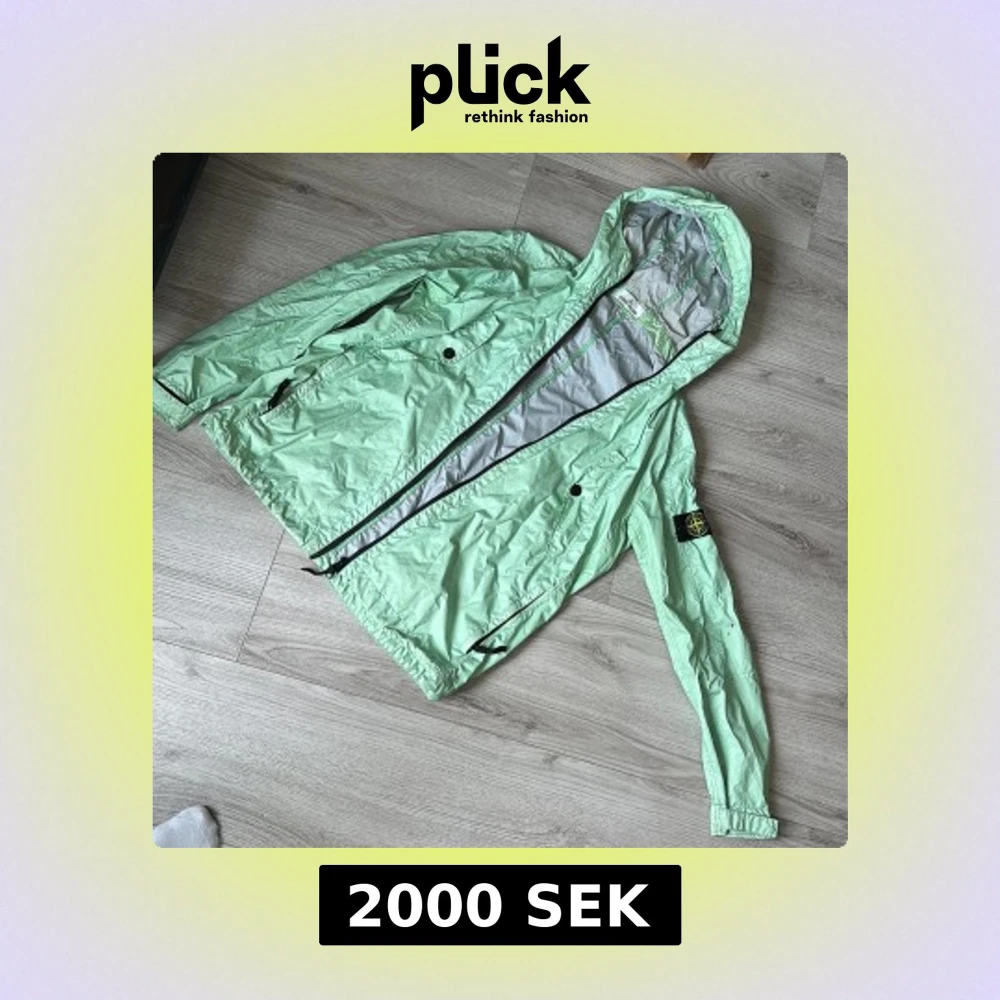 Snygg mintgrön vindjacka från Stone Island med huva och dragkedja. Jackan har långa ärmar och en stilren design med två fickor framtill. Perfekt för vår och sommar!