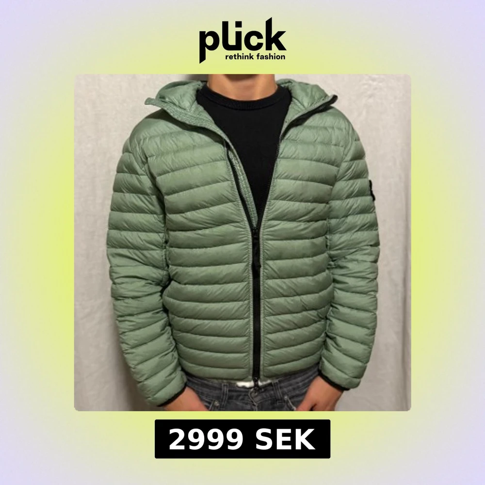 Snygg grön dunjacka från Stone Island, köpt i Frankrike för runt 8000 kr. Använd första vintern men sen blivit för liten. Skick: 7/10 – fräsch överlag men har två små hål (syns knappt). Äkthetskod finns (CLG-nummer, går att kolla på certilogo.com). Nypris ca 8–10 000 kr. Pris: 2800 kr, men ej hugget i sten.