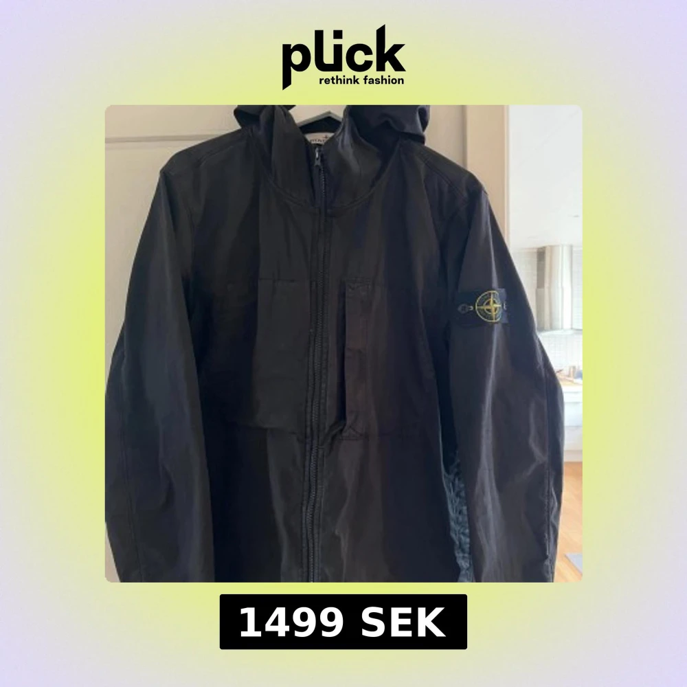 Säljer en svart jacka från Stone Island i bomullstwill med stretch. Jackan har huva, dragkedja framtill och klassisk logotyp på ärmen. Perfekt för dig som gillar stilrena och funktionella plagg.