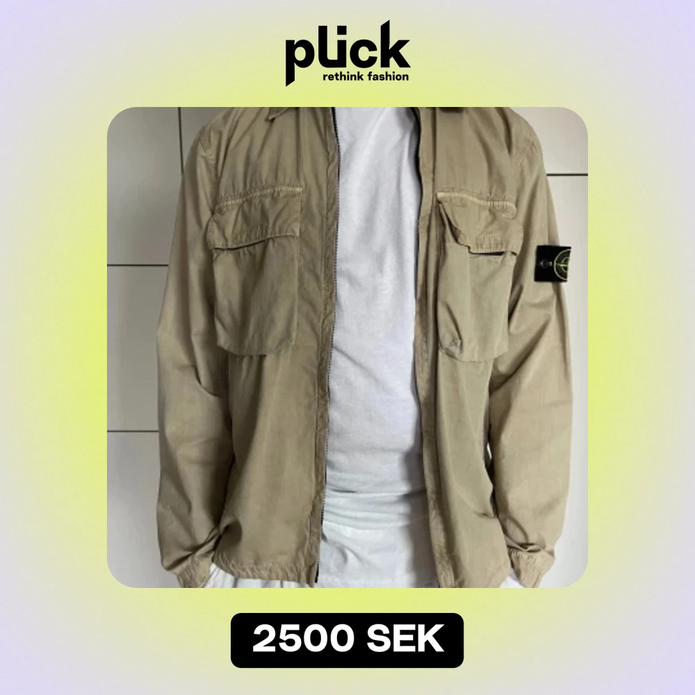 Mycket fin jacka i nyskick. Beige med 2 bröstfickor fram. Bomull. Ofodrad. Storlek L, modellen på bilden är 183cm. Säljes för 2500kr, nypris 4900kr.