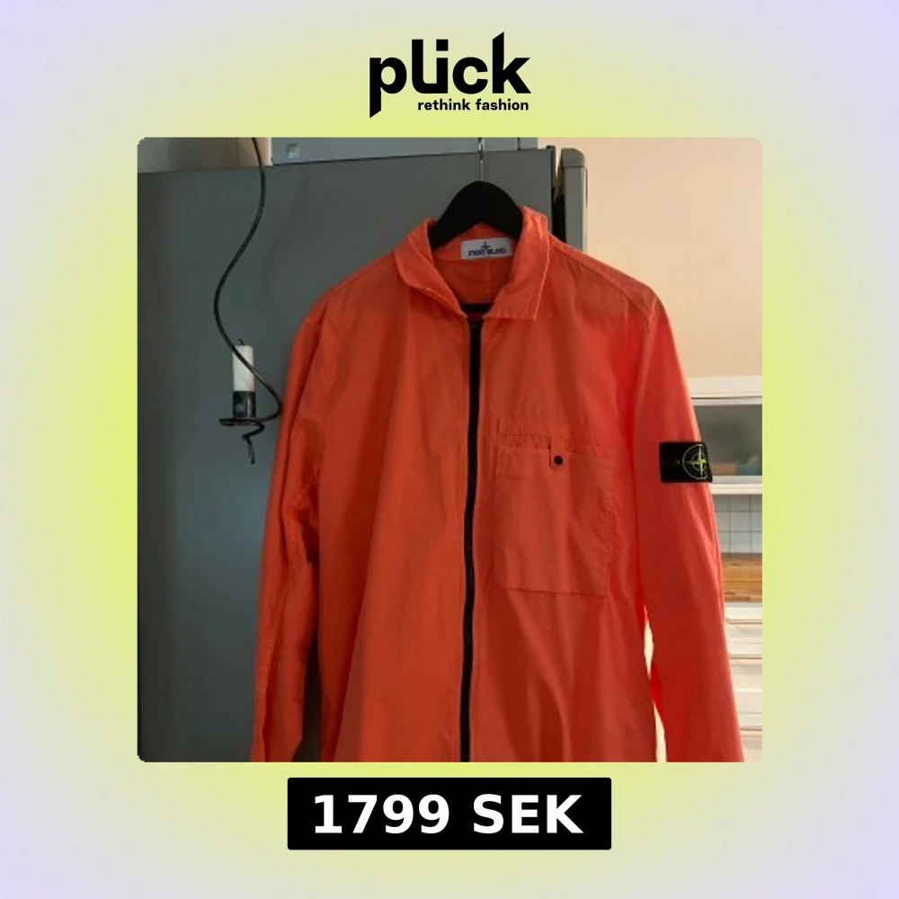 Snygg orange jacka från Stone Island med dragkedja och en bröstficka. Jackan har en ikonisk logga på ärmen och är perfekt för en stilren look.