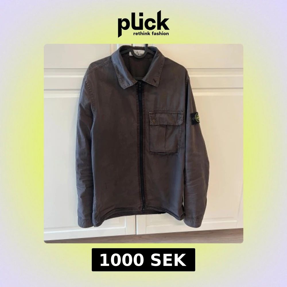 Säljer en brun overshirt från Stone Island med klassisk krage och bröstficka. Jackan har dragkedja framtill och den ikoniska loggan på vänster ärm. Perfekt för lager-på-lager och stilren look.