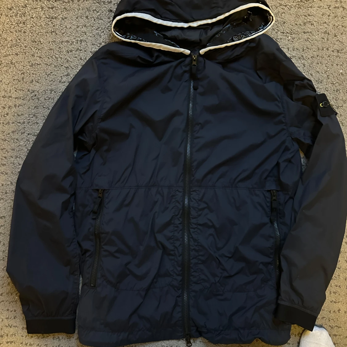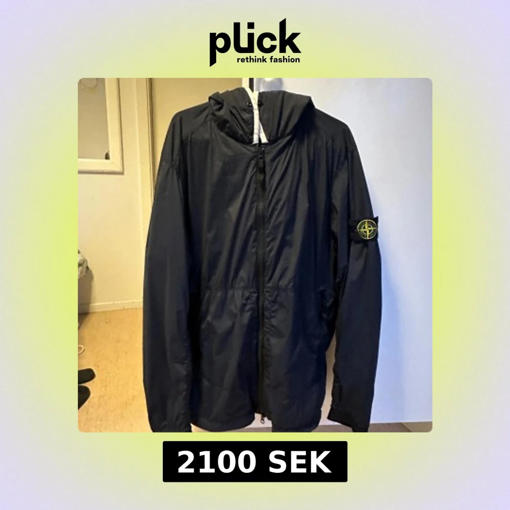 Snygg svart vindjacka från Stone Island med ikonisk patch på ärmen. Jackan har huva med vit kant och i storlek M men passar L också, dragkedja framtill och två fickor med dragkedja. Tillverkad i lätt och slitstark nylon, perfekt för blåsiga dagar. Enkel och stilren design som passar till det mesta. Kan tänka mig att byta mot något annat Stone Island. OBS SKICKAS EJ! Bara avhämtning i Göteborgsområdet och säljs utan patch! Mvh