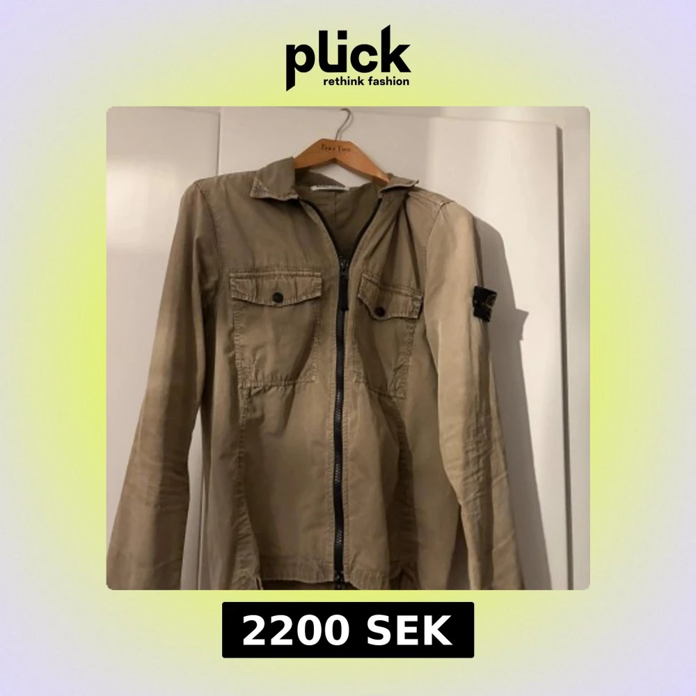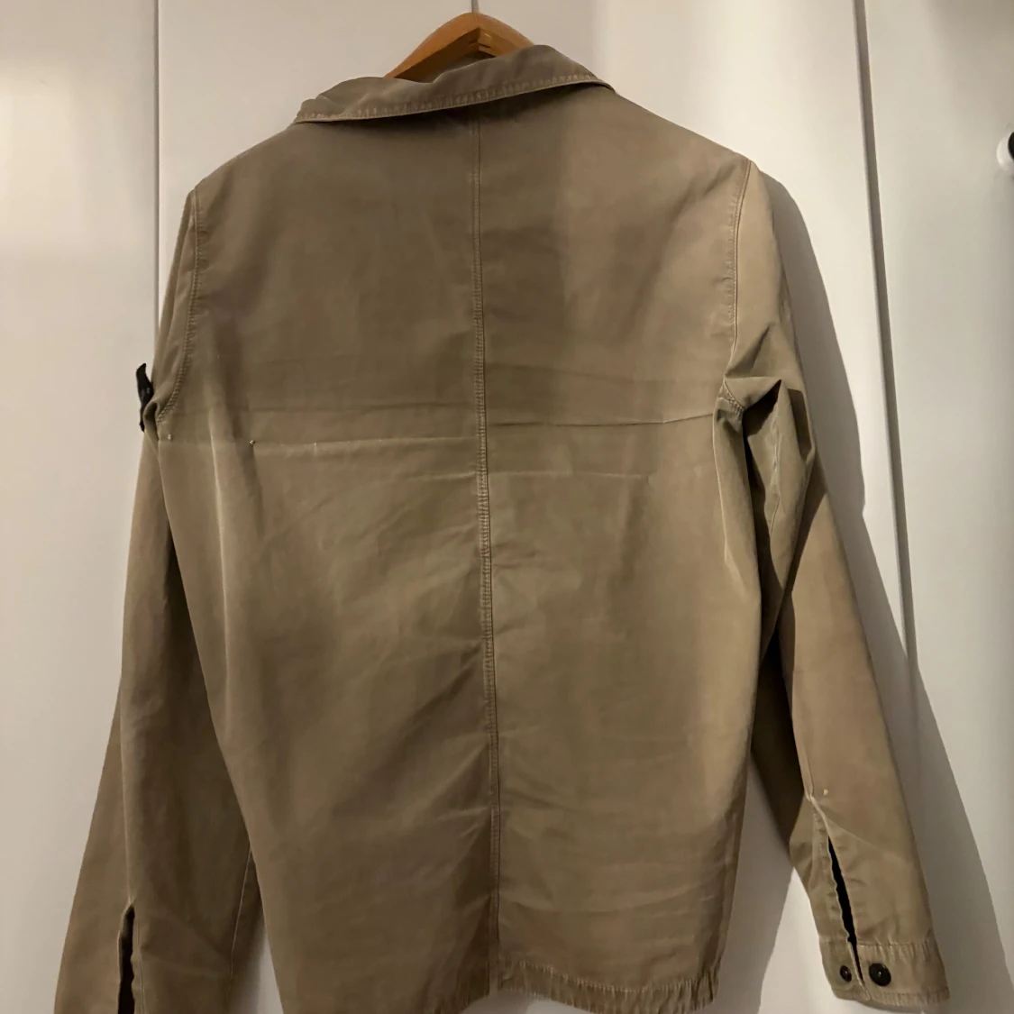Säljer en beige overshirt från Stone Island med klassisk patch på ärmen. Jackan har två bröstfickor med knappar, dragkedja framtill och krage. Tillverkad i bomull och har en clean, stilren look som passar perfekt till streetwear.