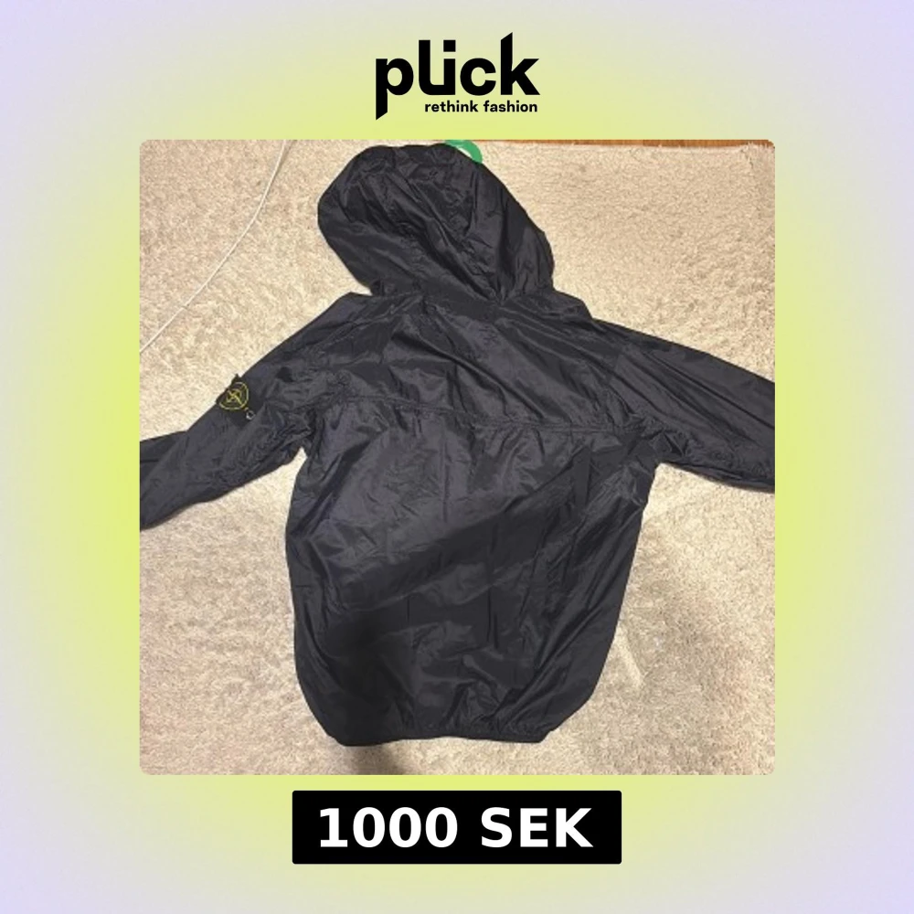 Säljer en svart vindjacka från Stone Island med huva och dragkedja. Jag säljer pågrund av att jag köpte en för liten