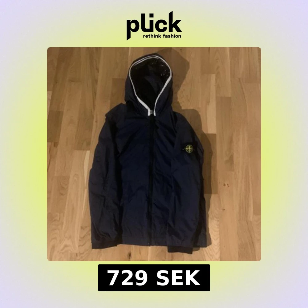 Snygg mörkblå vindjacka från Stone Island med huva och klassisk logotyp på armen. Nypris för jackan är 2049kr. Jackan är i junior storlek som passar för barn 12-13 år. 158-166cm. Använd bara några få gånger i den bästa skicket någonsin!