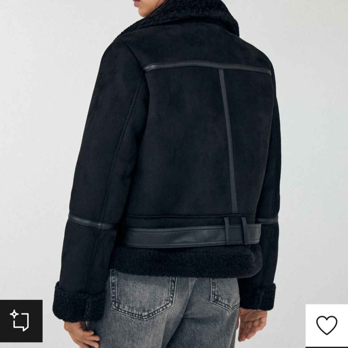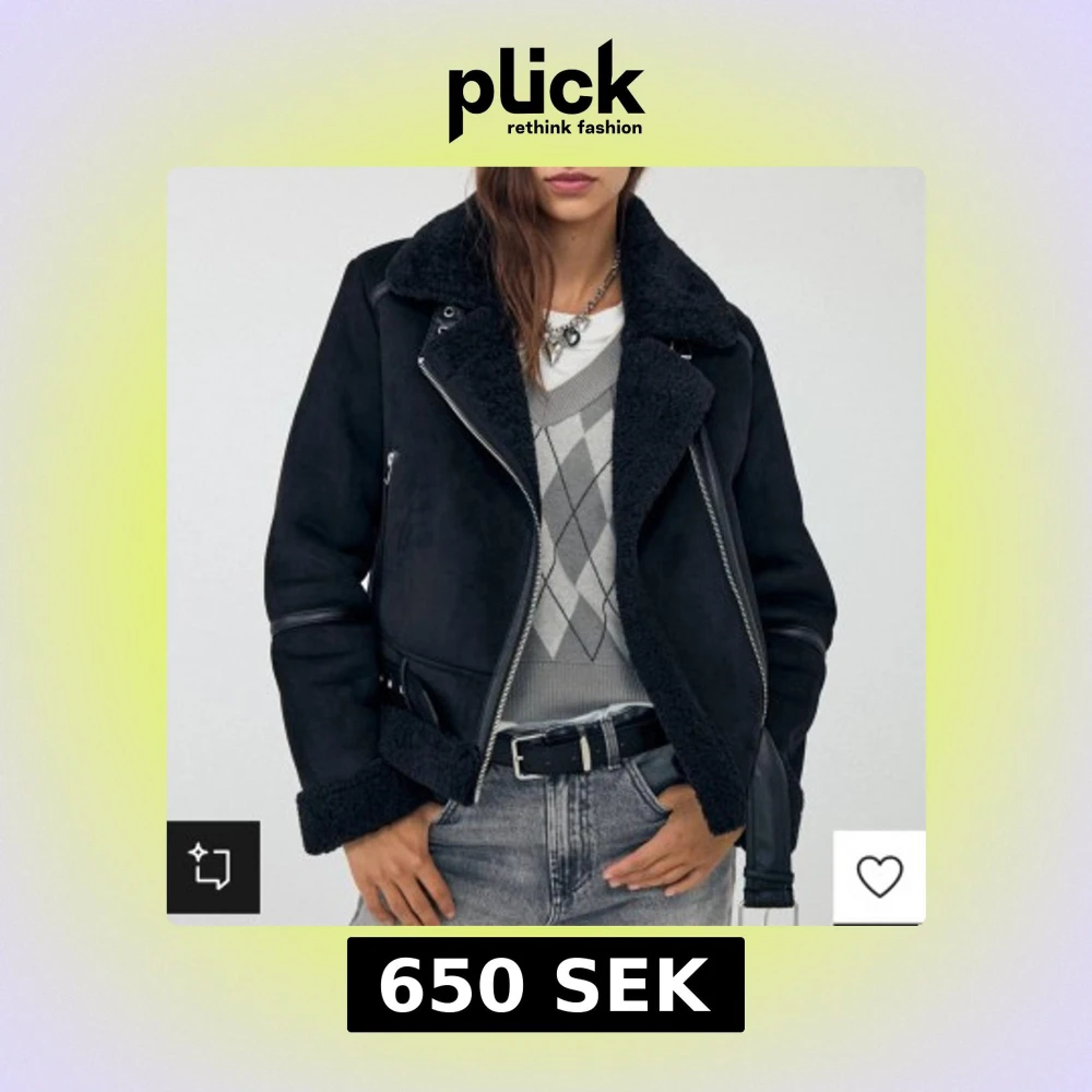 Snygg svart jacka med fuskpäls och dragkedja. Jackan har en klassisk bikerstil med bälte i midjan och detaljer i skinn. Perfekt för kyliga dagar.
