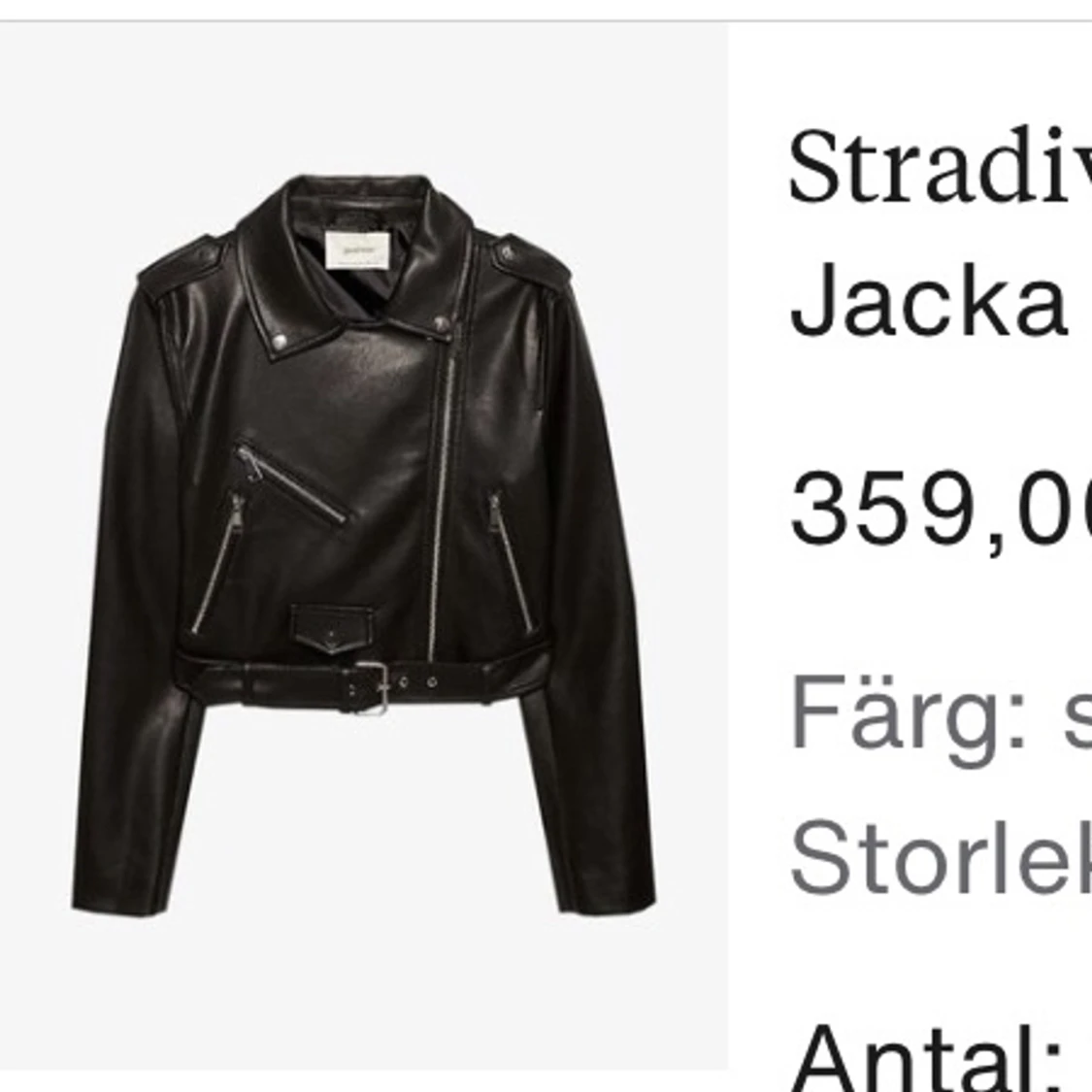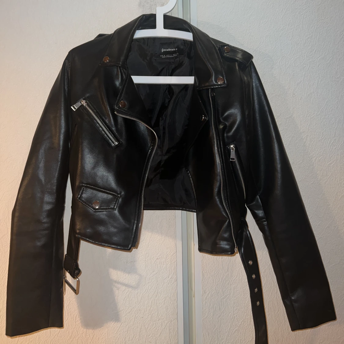 Skinnjacka från Stradivarius. Endast använt fåtal gånger så den är i bra skick. Den är i storlek S och säljs för 150 kr Betalning sker via Swish!