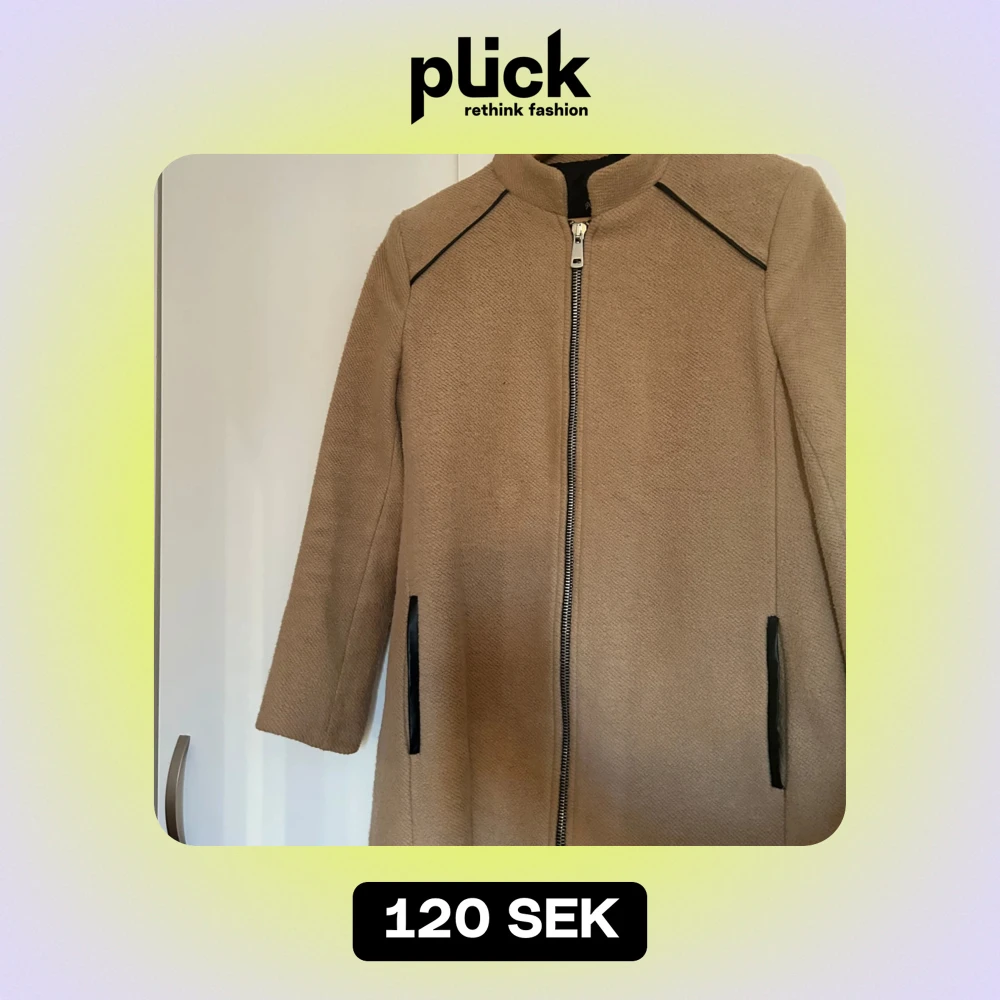 Säljer en stilren beige kappa från Stradivarius i mycket bra skick. Den har en dragkedja framtill och svarta detaljer vid fickorna. Perfekt för höst och vår, med en klassisk look som funkar till alla tillfällen. Passar dig som gillar en normal passform.