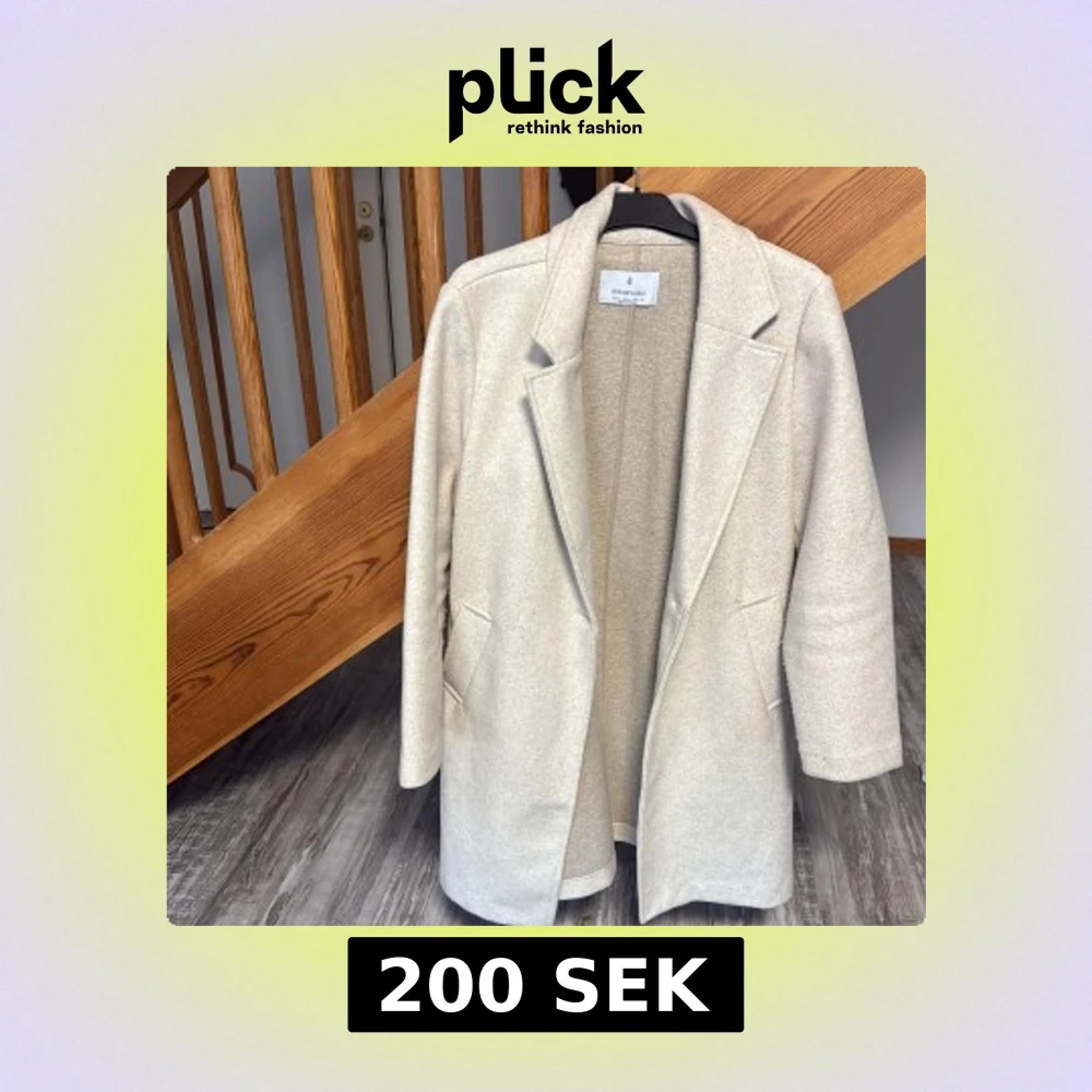 Snygg beige kappa från Stradivarius i storlek L. Klassisk rak modell med krage och två fickor framtill. Jackan har lång ärm och är tillverkad i mjukt material som ger en stilren look. Perfekt för dig som gillar minimalistisk och clean stil.