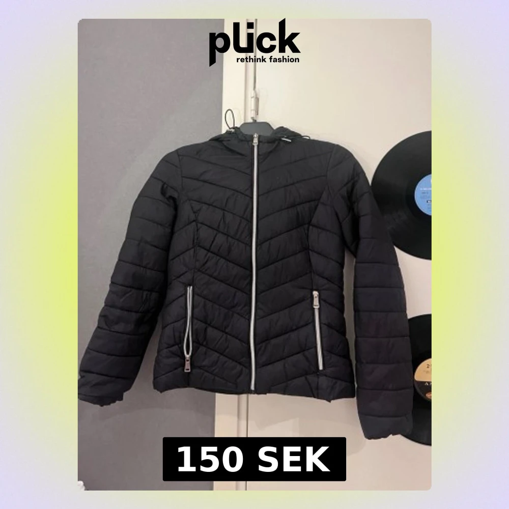 Snygg svart dunjacka med huva och quiltad design. Jackan har dragkedja framtill och två praktiska fickor med dragkedja. Perfekt för kyliga dagar och har en modern passform som sitter bra.