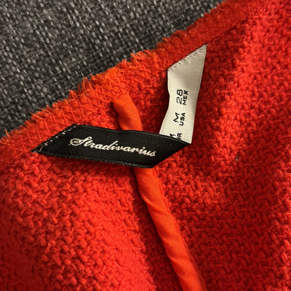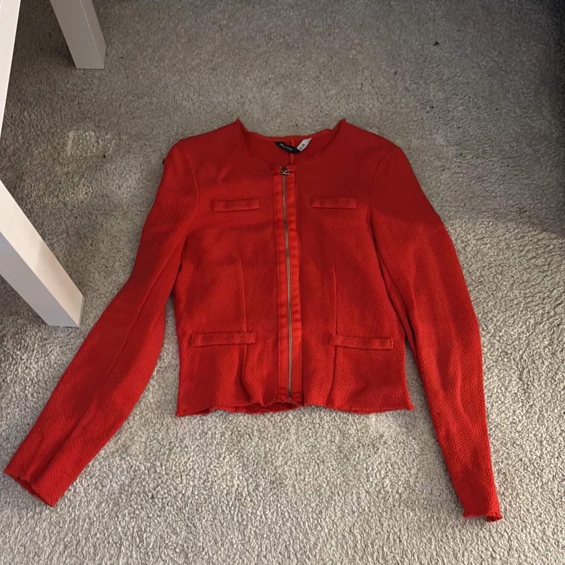 Säljer en snygg röd cardigan jacka från Stradivarius i storlek M. Jackan har en croppad passform, långärmade ärmar och dragkedja framtill. Materialet är stickat och jackan har dekorativa fickor framtill. Perfekt för dig som vill sticka ut lite extra!❤️❤️