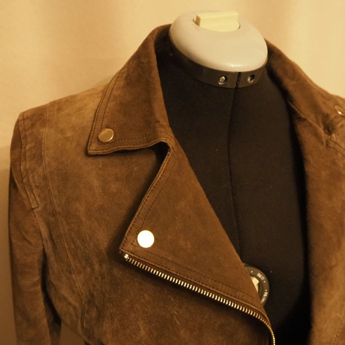 Bikerjacka i mocka i bra skick, utan defekter. Stradivarius, storlek S/36.