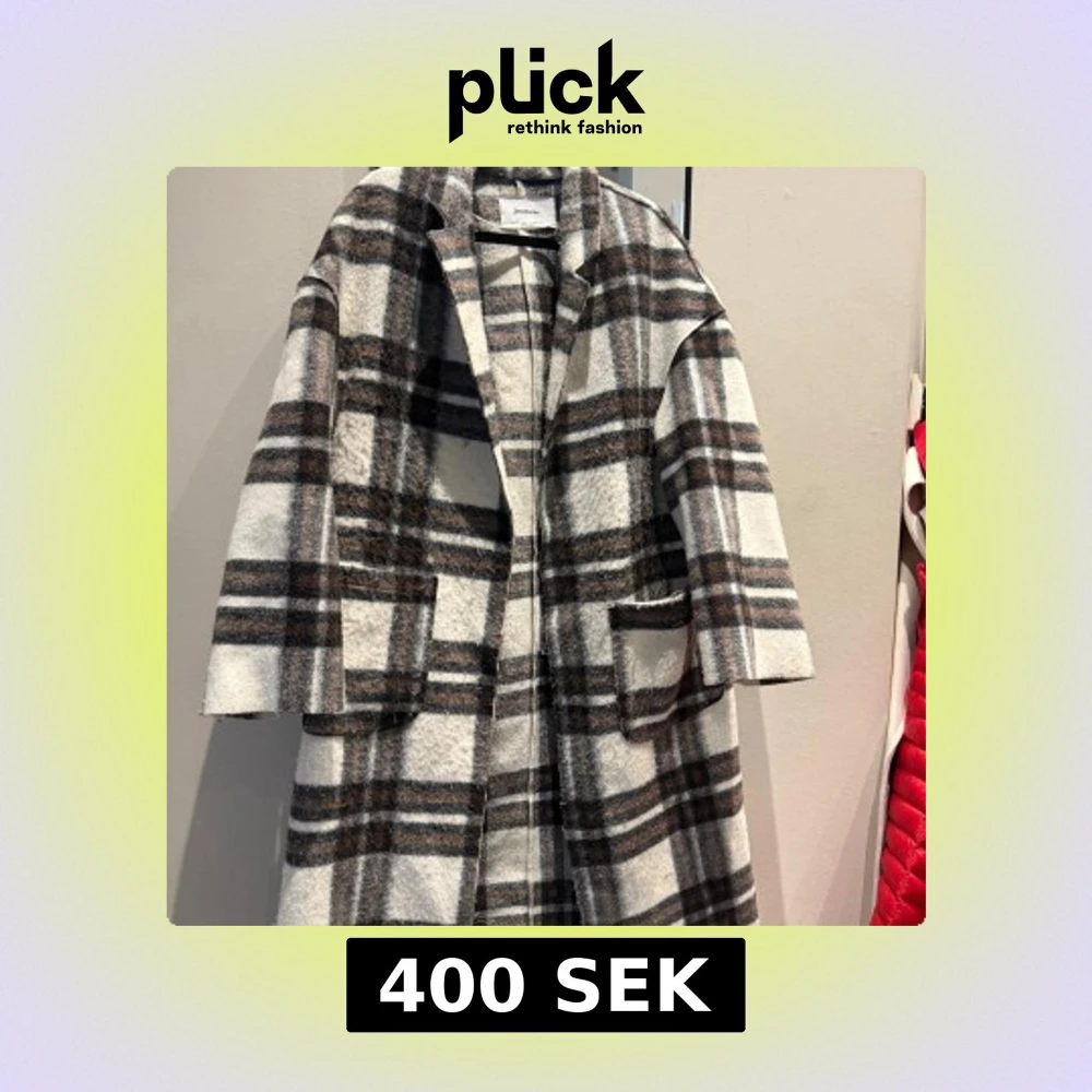 Säljer en oversized rutig kappa från Stradivarius i mjuk ullblandning. Jackan har stora fickor framtill, klassisk krage och går i beige, brunt, vitt och grått.