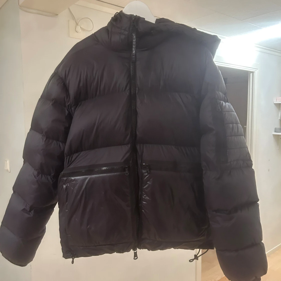 Säljer en svart pufferjacka från J.Lindeberg med huva och stora framfickor med dragkedja. Jackan är fodrad med ett mönstrat innerfoder i rött och olivgrönt/svart. Bara änvänd några få gånger. Perfekt för kalla dagar och riktigt snygg street/stockholmsstil. Kvitto finns och pris kan diskuteras vid snabb affär!