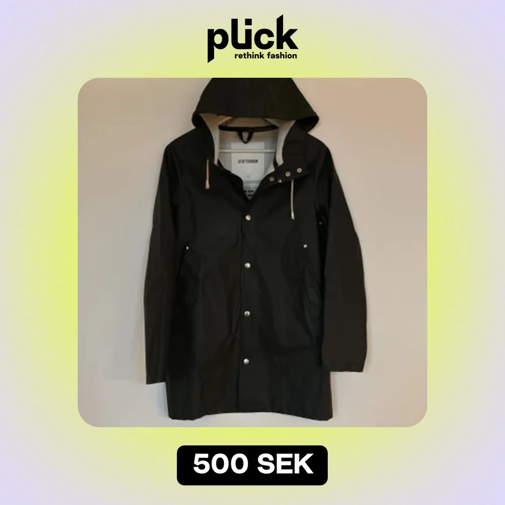 Svart Stutterheim regnjacka i mycket gott skick. Viss missfärgning på insidan (se bilder). Storlek XXXS