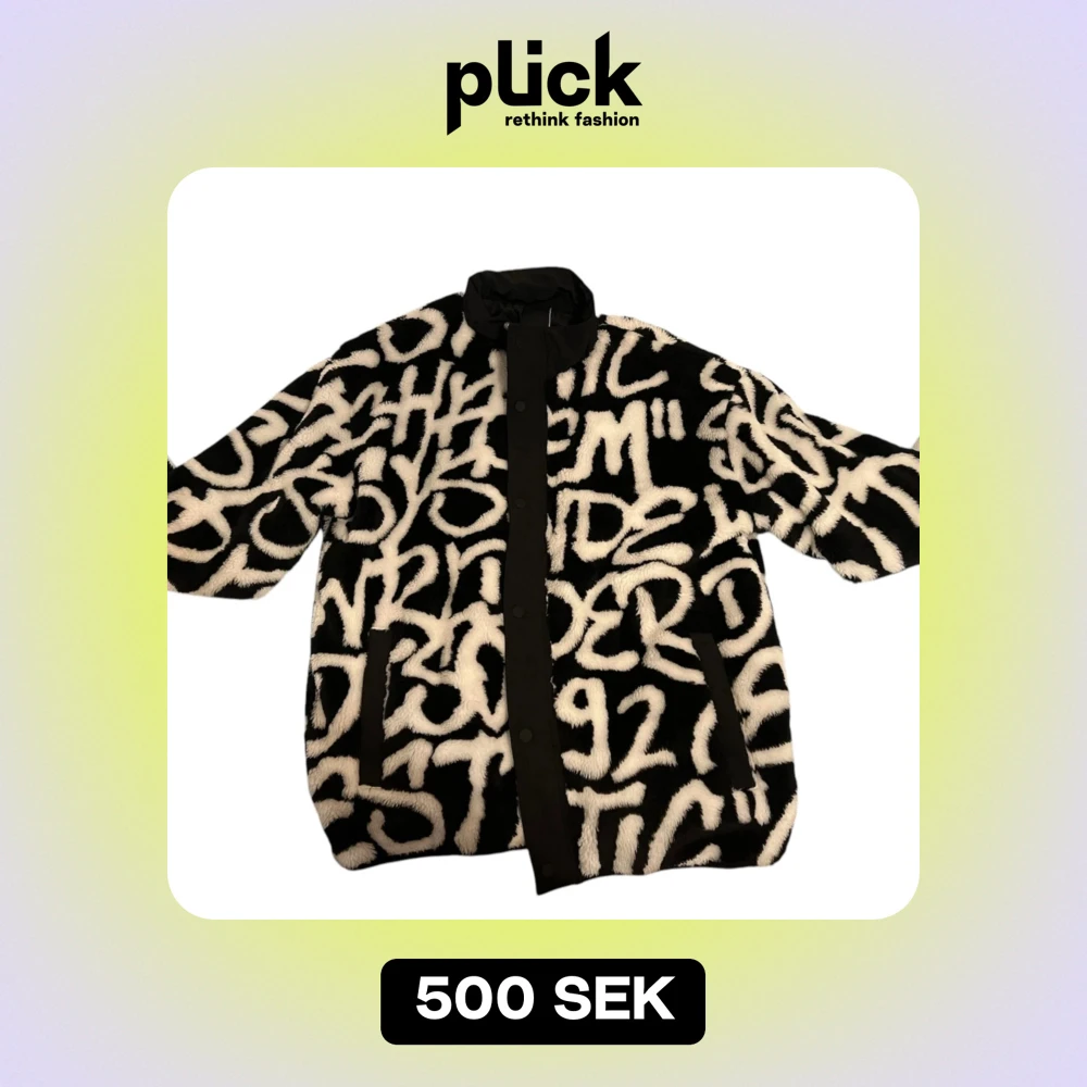 Säljer en unik svartvit pälsjacka med coolt graffiti-mönster i storlek Xl. Perfekt för att sticka ut i mängden och hålla sig varm samtidigt. Aldrig använd,