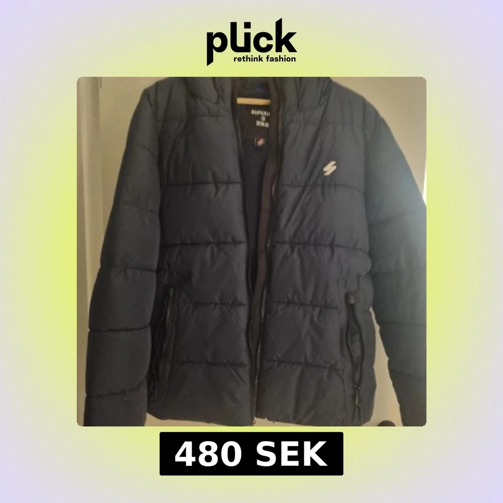 Mörkblå pufferjacka från Superdry med dragkedja och huva.