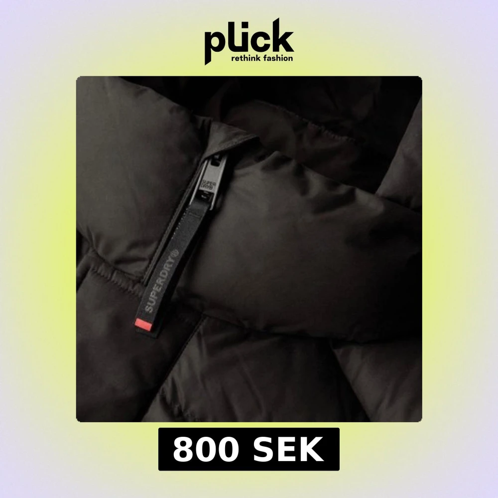 Säljer en svart pufferjacka från Superdry med hög krage och huva. Jackan har synliga dragkedjor med Superdry-logga, två sidofickor och quiltad design. Perfekt för kalla dagar och har en clean, modern look som funkar till streetwear.